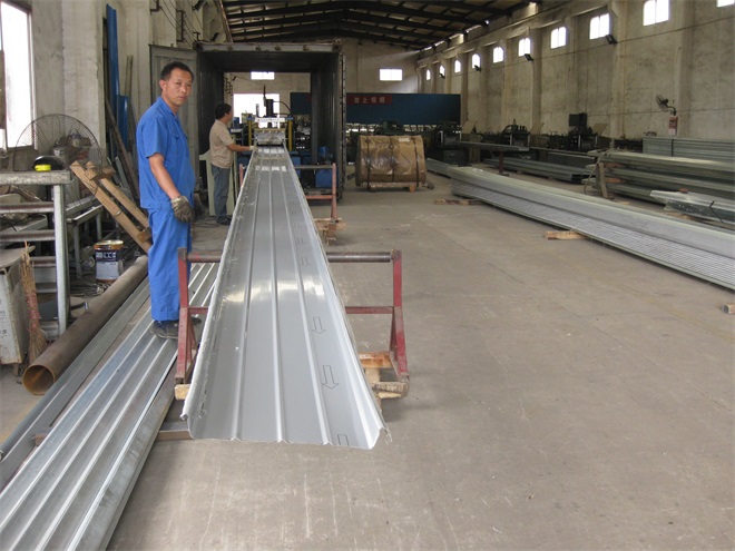 永州YX65/430直立鎖邊鋁鎂錳板生產(chǎn)實(shí)拍 板長18m